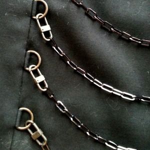 Black Versace mini skirt with chain detailing on front, side zipper, and plain back. Size 38. Fits a size 0 or a 2 with slim hips.