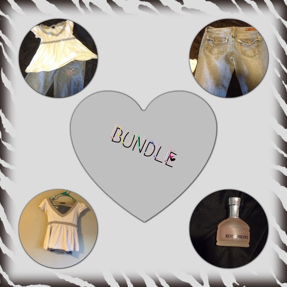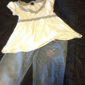 Urban behavior top. Size medium. Bongo jeans size 7. And remberance perfume! Top is cream and gray!