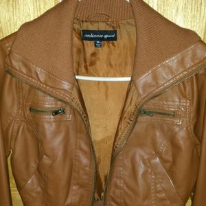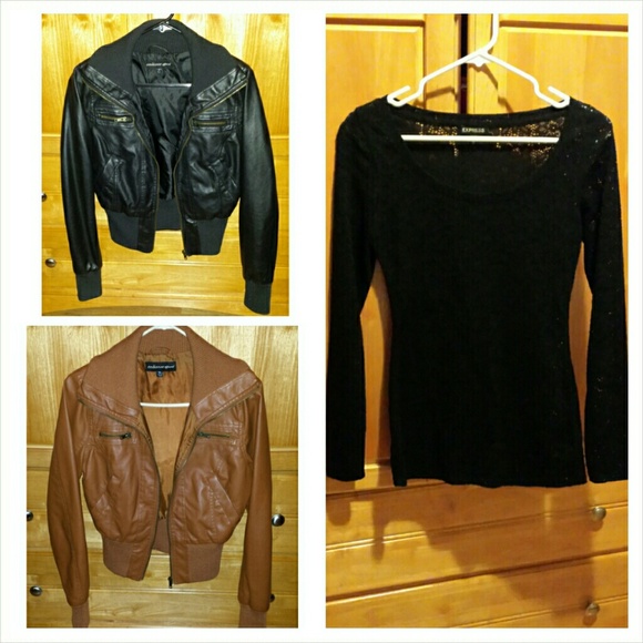 Black and camel color faux leather jackets. Medium but run small. Black long sleeve lace top from Express size xsmall.