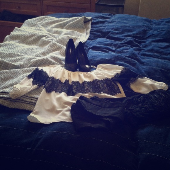 BCX black and White dress shirt, worn twice. Rock Revival Jean Size 24 Skinny, early worn. Top Moda black heels size 5 and true to size, worn once but still very new.