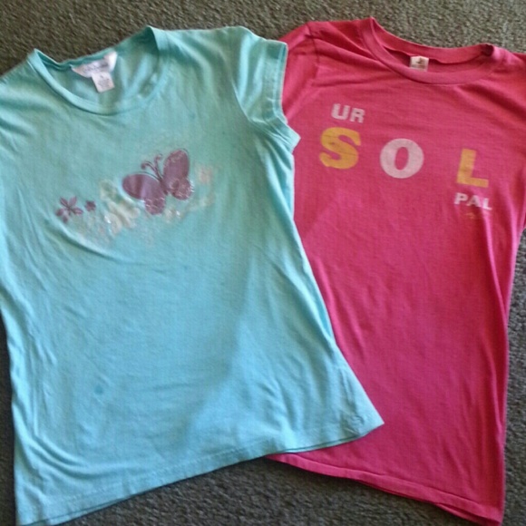 Pink HOLLISTER size small 60% cotton 40% polyester. Light blue Aeropostale size medium. 100% cotton. No stains or holes.