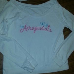 White Aeropostale sweater. Large neck to fall to sholders. No stains or holes. American Eagle size medium sweater. Off white. No stains or holes. I live in Florida so I really don't need these. Only reason I am getting rid of them. :)