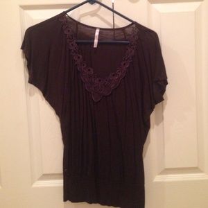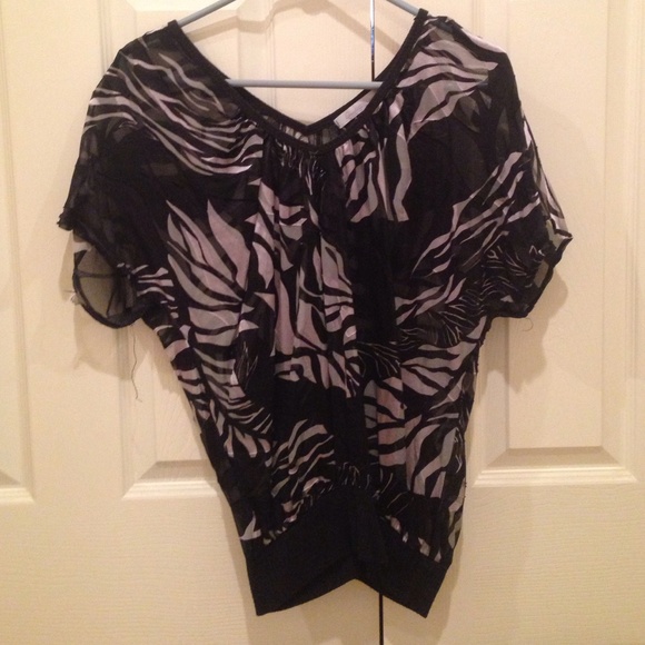 Black zebra print sheer top (Brand: Charlotte Russe) size S. Brown top (Brand: Rue21) Size: S. Purple top braided neck (Brand: Rue21) size: S. Blue top (Brand: sound & matter) size: S