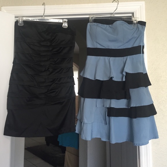Two party dresses- black dress is size 7, blue and black dress size medium. Only worn each one once. $7 each outside of bundle.