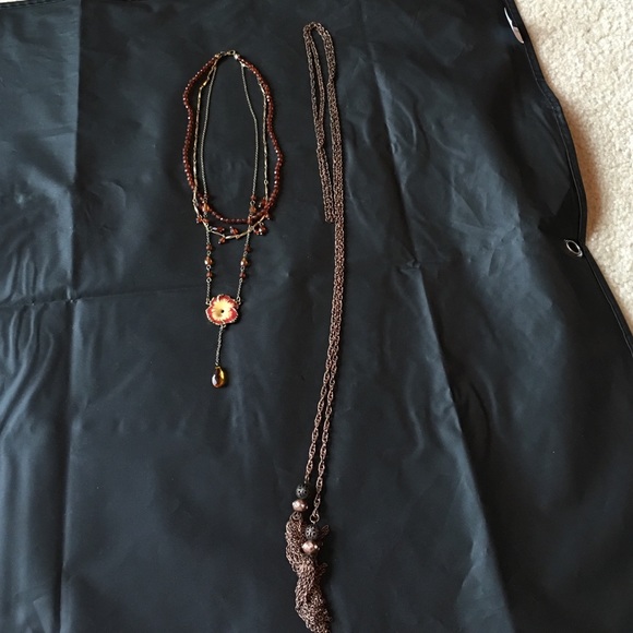 Three layered necklace and bronze wrap necklace
