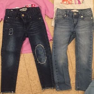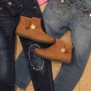 Bundle two 4t two pairs of size 4/5 Levi’s skinny & Oshkosh, and new tan boots size 10
