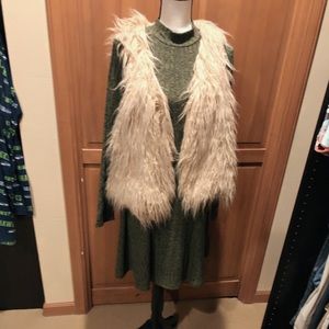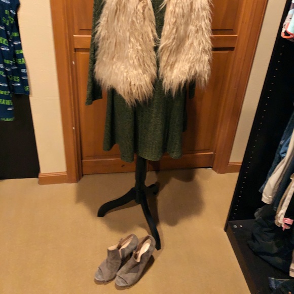Dress( long sleeves) furry vest, size 8 1/2 Booties (Italian) 3-4 inch High heels.