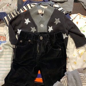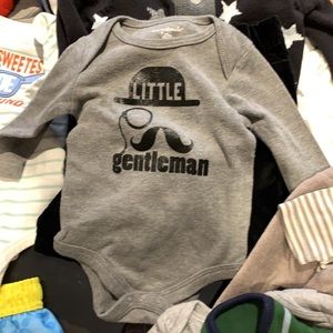 1 Carter’s NB white onesie, 2 Gerber 3-6mos onesies, 2 Cat&Jack onesies 3-6mos, Swim trunks 3-6mos, Carter’s 3 piece tiger 3mos, 1 child of mine long sleeve onesie 3-6mos, 2 Old Navy long sleeve onesies 3-6mos, Hooray 2 piece outfit 3-6 mos, 1 Garanimals onesie 3-6mos, 2 Carter’s 3 piece outfits 6 mos, 5 Carter’s onesies 6mos, Nike onesie 9/12 mos, Childrens Place onesie 9-12 mos, Carter’s pants 24 mos, 4 Carter’s onesies 6 mos