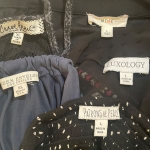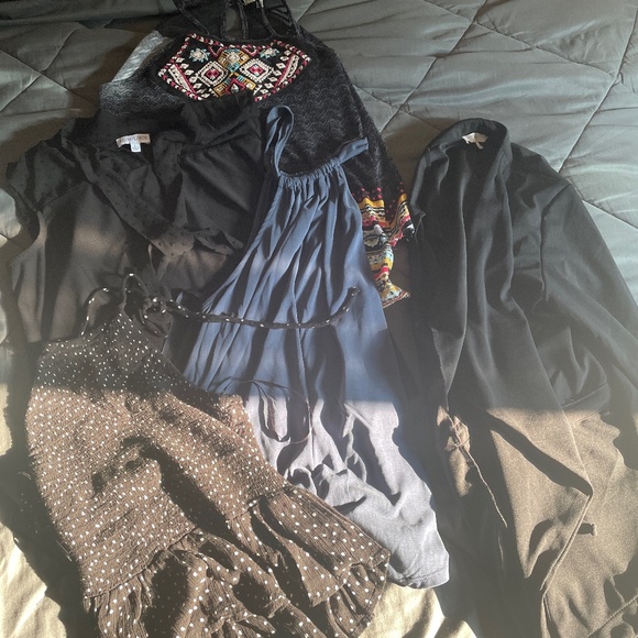 Black dress jacket size large with 4 sleeveless tops. 2 fun 2 business. All size large except the multi colored is XL but fits like a large.