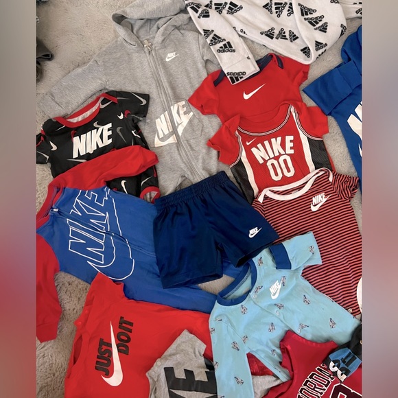 Selling as a bundle. All size 9month in great condition, lightly worn. Some are new with out tags. All Nike, Jordan and adidas