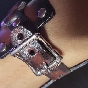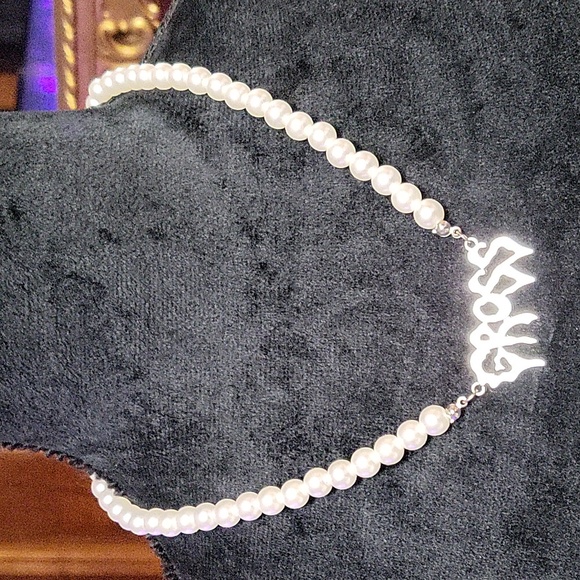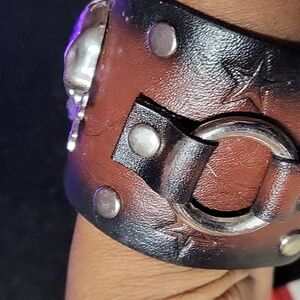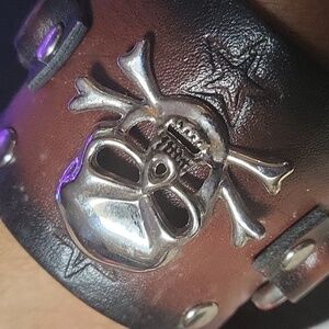 Pearl gross necklace with a leather wristband skulls from hot topic necklace handmaid!