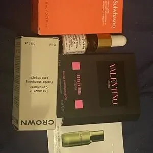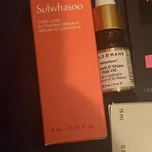 Sulwhasoo first care serum .27, fable&mane smooth & shine hair oil .16, Valentino born in Roma intense .004, Crown Affair leave in .5, La Mer treatment lotion .005. New.