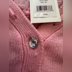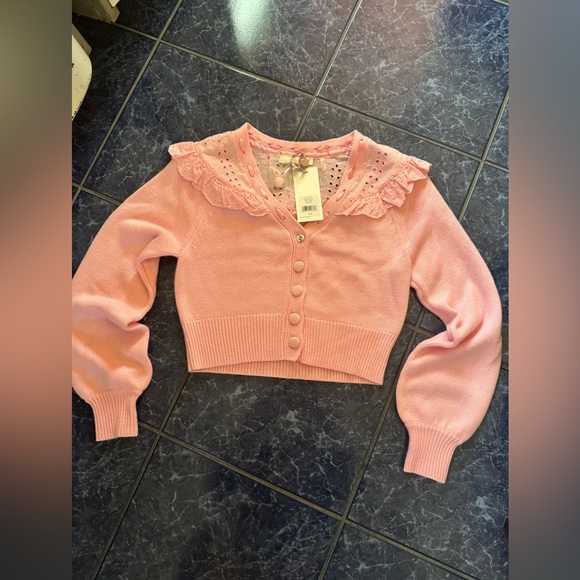 Loveshackfancy Pink cardigan size XS - please see photo - button has come off. The item comes with another button as well as the button that came off.