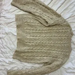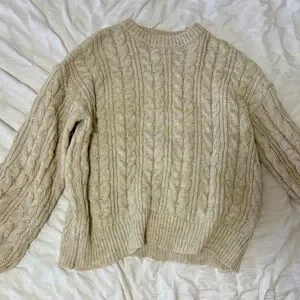 Stay cozy and stylish with this cream cable knit sweater. Perfect for layering in cooler weather.