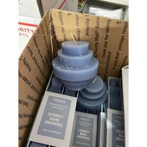 Bundle (8-2 pack) Diamond Taper Candles. Quilt Blue & 3-Tiered Fragrance Free 10”
