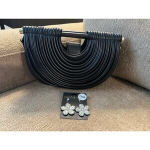 Bundle Black Semi Moon Handbag with Rhinestone Earrings NWT