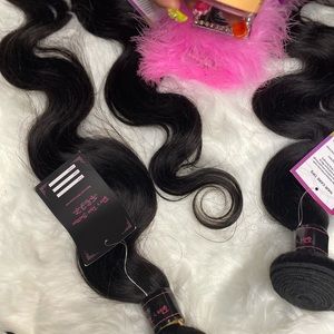 Customized bundle box. Body wave 18’,20’,22’ 10A 100% Virgin human Hair. 2 mink Eyelashes and Tyler Grip edge control look us up on ig or tik tok people love this great product!