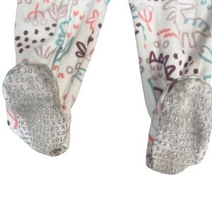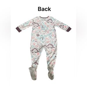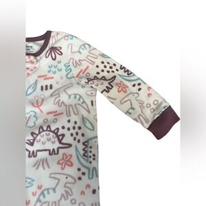 Charming footie with dinosaur design. Soft and cozy fabric. Perfect for playful days. Two pair of onsie sleepwear great for the winter. Footwear area is worned on both jumpers but jumpers are in overall good condition. No rips or holes or tears in both jumpers. Pet and smoke free items.