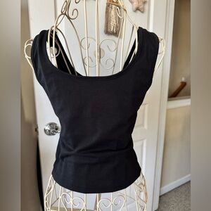 Black semi-cropped tank. Stretchy and soft material. NWOT. Size XS but fits more like a S.