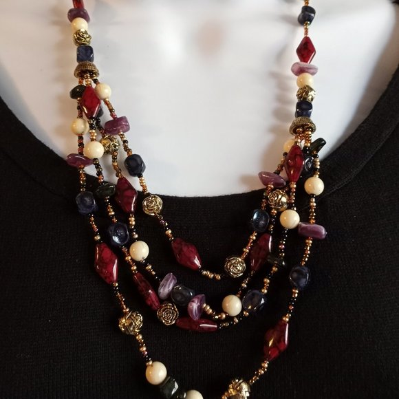 Bundle Deep Red Dk. Blue Lavender Gold Bone EUC Earrings 22" Necklace-Item #150