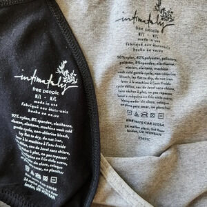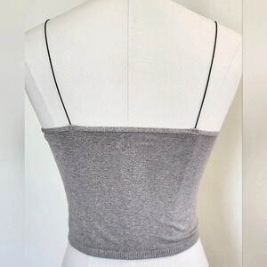 A 2 piece bundle of black Skinny Strap Bralette in sz M/L and a heather gray Brami crop top also in M/L.  Bralette is a v neck bra style in front with 2 spaghetti straps connecting a thong style strap in back. The rib band is ribbed. The Brami is a heather gray crop top with a slight v neck in front connected by 2 spaghetti straps to the back. The rib band is ribbed. Neither have been worn or washed.