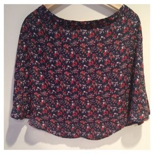 Top: Cream knitted sweater originally from H&M has a couple of snags throughout the sweater but is still adorable! No noticeable stains! Very comfy & perfect for spring. Skirt: Navy blue floral skirt originally from Forever 21, perfectly paired with any outfit & has a zipper backing. Very light weight & perfect for spring and summer!