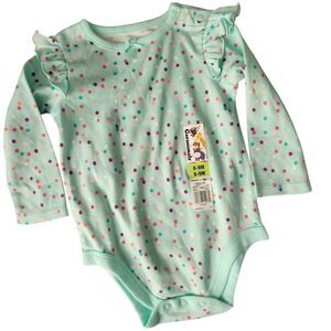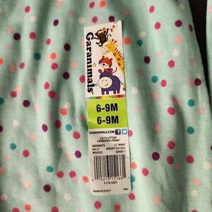 (1) Garanimal: Polka dot with Ruffle trim, Long Sleeve one piece. Snap bottom. (100% cotton) Size 6-9 months