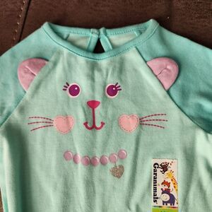 (1) Garanimal: Cat one pice. Long Sleeve. Snap bottom. (100% cotton)