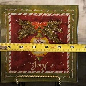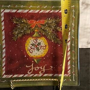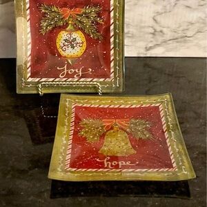 2 Janie LaPoint 6 in Square Glass Candy Dish Trinket Plate Christmas Decor Joy