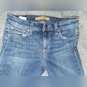 Stylish and comfortable women's jeans in blue and minty green (summer color!). blue jeans are skinny ankle, minty green are full length. high quality Joe's Jeans, both size 25.