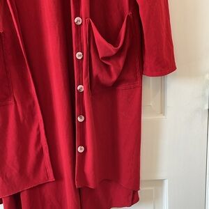 1) Unbranded - size XL - red - button down - front pockets - ribbed - high low cut - long sleeve