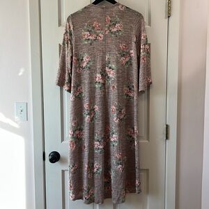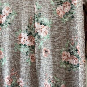 2) torrid - size 1X - knit - creme background pink floral - open front - bell sleeves - 3/4 sleeve