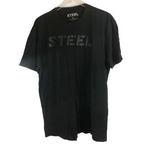 Steel black logo on black shirt