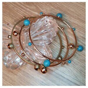 Bundle Lot Of 3 Gold Tone Bangle Bracelets Stackable Layering Boho Trendy