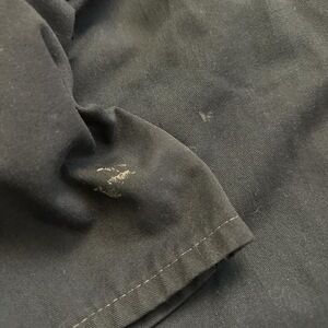 The checkered short has staining on the front bottom right side; the black shorts has some white stain on the bottom right side and a tiny stain on the left. See all pictures