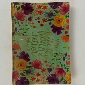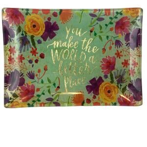 Tray — Natural Life Everyday Reminder Dish Painted Glass Blooming Flowers Floral Gold Lettering Gold Backside " You Make the World. a Better Place" Trinket Tray Jewelry Soap Dish Sentimental Inspirational Gifts