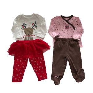 Bundle Of 2 Baby Girl Sets : Carter's Christmas 2 peace Set; Pink & Brown 3p Set