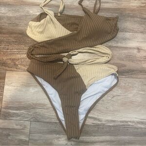 Bundle Of 2 SHEIN Bikini Swimsuits Size Large Wrap Around Tie High Waisted EUC