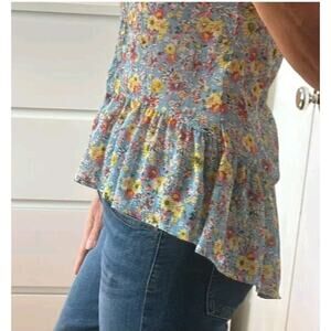 All four tops fit an extra small to small size. Model is chest size of 34C. Full cuts and perfect with camis or sexy bras or under blazers for a pop of color. Year-round wear! Some tags are missing but these are all clean and have zero flaws. All are somewhat sheer with the exception of the teal print.