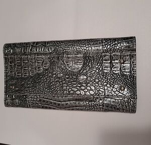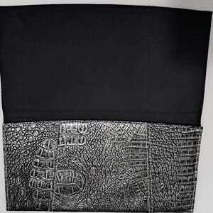 2. Silver crocodile faux leather, black tri fold lining, four silver studded feet
