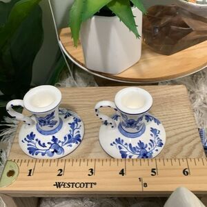 Candle Holders, Plate & Larger Windmill With Figures Are Marked Delft Blue