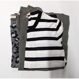 Bundle of three women's pre-owned sweaters in good gently used condition, normal wear. No rips or stains.