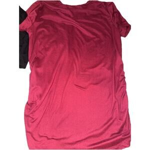 This bundle of two ladies Ragdoll maternity tops in size S includes a black V-neck top with 3/4 sleeves and a maroon scoop-neck top with short sleeves. Both tops are made of spandex and rayon, with a regular fit designed for maternity wear. The hand wash only care instructions ensure the longevity of these basic t-shirts, perfect for the summer, fall, and spring seasons. Made in Mexico, these tops from the Ragdoll brand are a comfortable and stylish addition to any woman's wardrobe.