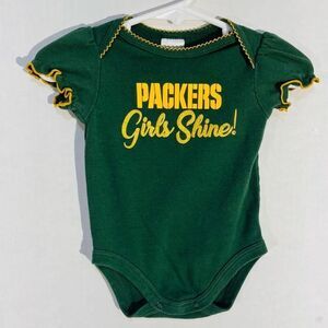 Three Green Bay Packers Onesies Girls Size 0-3 Months