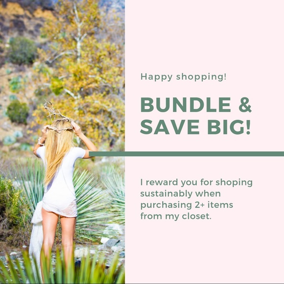 Shop sustainability by bundling. Create bundle w/2+ items & Iโll make offer w/discounted shipping. Shipping adds CO2 into the atmosphere ๐โ๏ธ๐, so Iโm offering BIG discounts when you buy 2+ items from my closet to make the transaction as sustainable & healthy for our planet as possible ๐. Thanks!๐ท