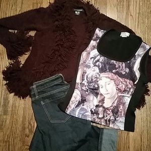 Hi @marys14 thanks for your likes and shares. The sweater is a medium. $15 for the sweater for all your likes and shares. Let me know if you wanted to select your own bundle. :)