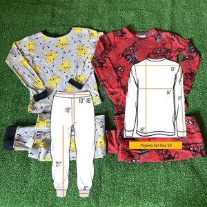 Bundle Pokemon Pikachu & Marvel Spiderman Two Pieces Pajama Set Kids Size 10