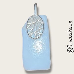 The pendant has an irregular shape with rounded corners and a glossy finish, showcasing a modern, playful aesthetic. One lower edge has a rough spot, and the opposite side features an intentionally irregular contour.
