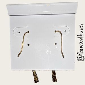 These earrings are new and unworn, mounted on their original display card. They are made from a gold-tone metal alloy with a matte to semi-gloss finish.