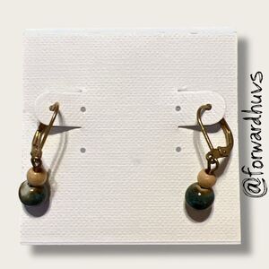 These are very pretty watch back hook earrings with two beads. The top bead is made of wood, and the bottom is made of either stone or porcelain. These are Boho, bohemian, neutral colors, and would look spectacular with anything from jeans to skirts to suits.